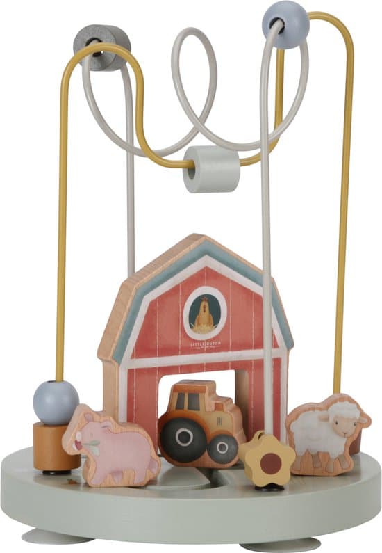 Deze houten activiteitenspiraal in boerderij thema biedt een leerzame activiteit voor jouw kindje. Breng de tractor, het varkentje, het schaap en de blokjes van de ene naar de andere kant! Geschikt voor kinderen vanaf 18 maanden.
